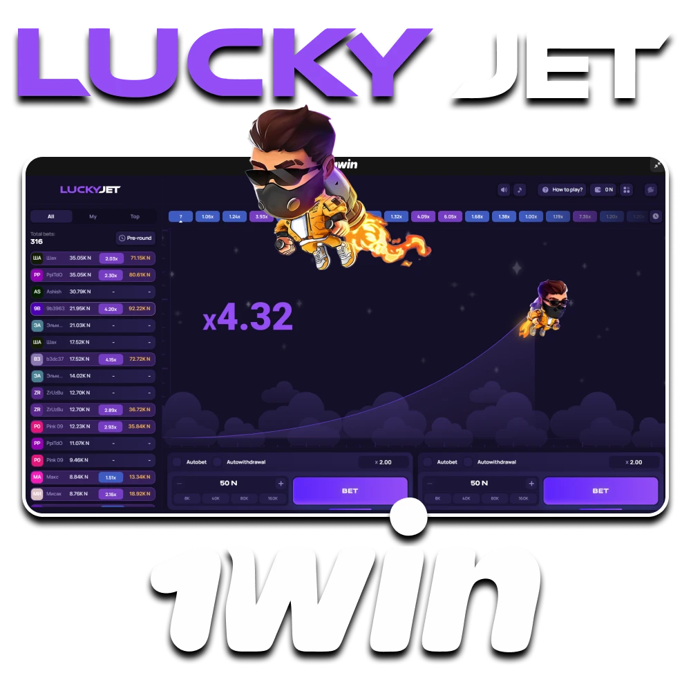 - Two betting panels per round for flexible tactics in the 1win Lucky Jet game;
